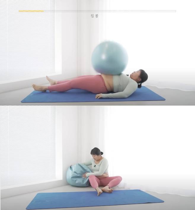 이어서 '플랭크 자세', '짐볼' 등의 동작을 알려주었다. 짐볼 동작을 알려주다 그만 짐볼이 터지고 마는 불상사가 발생하기도 했다.