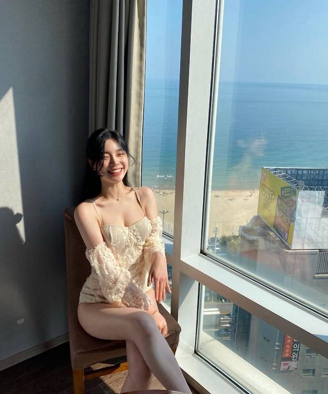 어깨 라인을 시원하게 드러내는 오프숄더 디자인이 여성미를 극대화하면서도, 전체적인 몸매 라인을 슬림하게 감싸주는 핏이 핵심입니다. 조연주 치어리더의 가녀린 바디라인과 완벽하게 어우러지며 패션 화보 같은 느낌을 자아냅니다. 비키니와 모노키니의 경계를 허문 이 스타일은 해변뿐만 아니라 인피니티 풀, 리조트 레스토랑에서도 손색없는 완벽한 바캉스룩입니다.