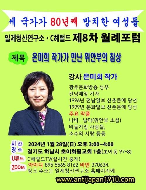 | ▲ 일제청산연구소 제8차 월례포럼 포스터에 소개된 은미희 작가. |