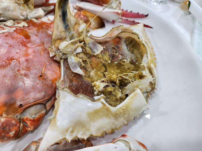 꽃게 알과 내장은 맛이 진하고 고소하지만 콜레스테롤 농도가 높습니다. 고지혈증, 고요산혈증이 있는 분들에게는 부담이 될 수 있으며, 통풍 병력이 있는 경우 증상 재발 가능성을 높일 수 있습니다.