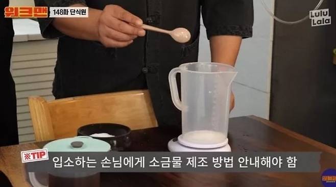 이렇게 장점만 많은 것이 아니라 하는 방법도 간단합니다. 전날 저녁을 가볍게 먹고, 꽃소금으로 소금물을 만들어놓으시면 되는데요. 소금물 농도는 1%로, 여기서 1%는 물 1.5L에 소금 한 스푼이라고 생각하시면 됩니다.