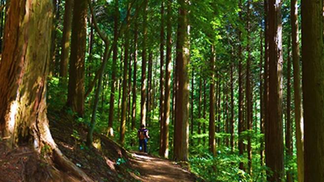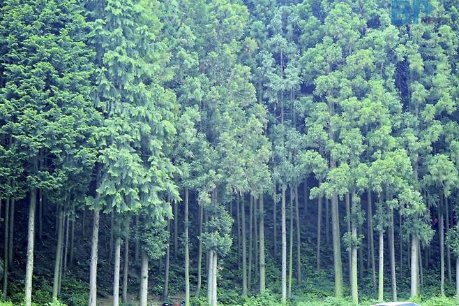 ‘축령산'(해발 621.6m) 일대는 1,150헥타르 규모의 편백과 삼나무가 울창하게 조성된 국내 최대의 인공 상록수림지다.