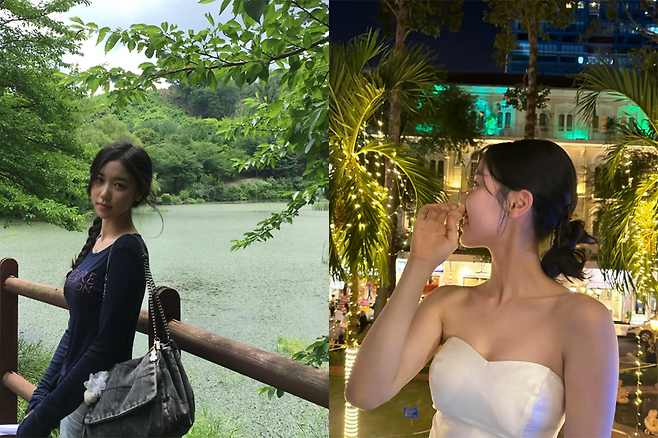여름에도 청순하게…네이비 롱슬리브로 완성한 이레의 호수 데이트룩
