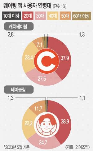 앱 분석 서비스 와이즈앱에 따르면 주요 웨이팅 앱의 사용자 비중은 지난해 5월 기준 20~40대가 80%를 넘는다. 50대 이상 비율은 10%대였다. 테이블링의 60대 이상 이용자 비중은 1.3%뿐이었다.