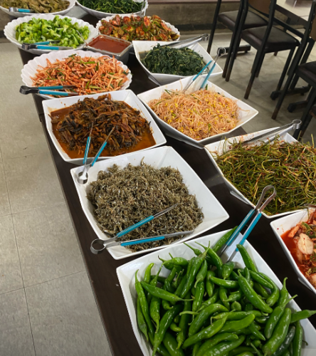 한 번 담고 끝이 아니라, 쟁반만 들고 오가며 자유롭게 리필할 수 있어 든든하게 먹기 좋습니다. 음식 맛은 자극적이지 않고 집밥처럼 담백해서 매일 먹어도 부담이 없습니다.