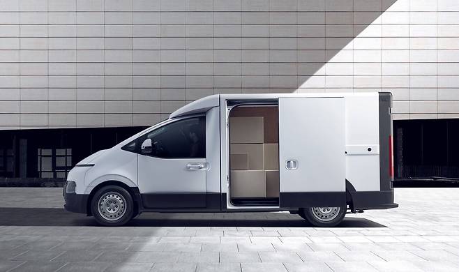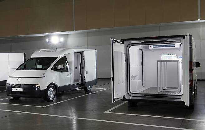 현대차가 스타리아 뼈대를 기본으로 한 택배 물류차를 런칭한다. 23일 송도 컨벤시아에서 새로운 전동화 비즈니스 플랫폼 ST1의 물류 특화 모델을 처음 선보이는 미디어 설명회를 열었다.