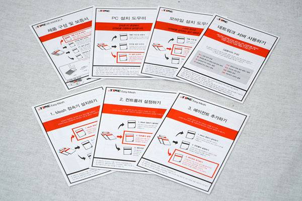 그 밖에 제품 구성 및 보증서, PC 설치 도우미, 모바일 설치 도우미, 네트워크 서버 사용하기, 그리고 이지 메시 구성을 위한 3단계의 안내서가 제공된다. 제조사 EFM네트웍스에서 2년 품질 보증을 받을 수 있다.