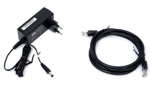 ipTIME BE3600QCA에는 공유기 본체는 물론 USB 포트에 외장 HDD를 연결하더라도 안정적인 전원을 공급할 수 있는 12V-2A 외부 전원 어댑터가 포함되며, 이더넷 케이블이 함께 제공된다.