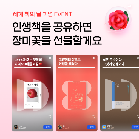자신의 인생 책을 공유하면 블라인드북과 장미 꽃다발을 같이 드리고 있어요.
