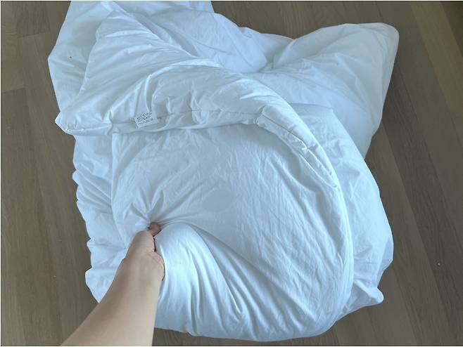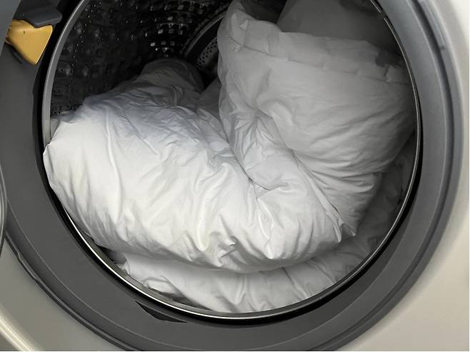 이렇게 하면 침구 사이사이에 물과 세제가 잘 들어가지 않아서 세탁 효과가 떨어져요