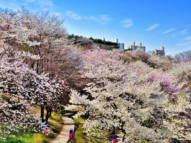 서울 서대문구에는 여의도 못지않은 벚꽃 산책 명소가 있다. 바로 서대문 안산 기슭에 자리한 ‘연희숲속쉼터’다.