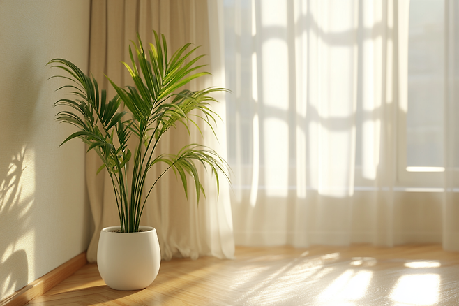 특히 공기정화 기능이 뛰어난 스투키, 아레카야자, 산세베리아 같은 식물은 관리도 어렵지 않으면서 공간을 부드럽게 해줍니다.