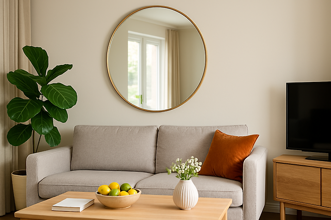 둥근 형태의 거울이나 금속 소재의 소품은 부드러운 흐름을 유도하고, 특히 기운을 확장시키는 역할을 합니다.