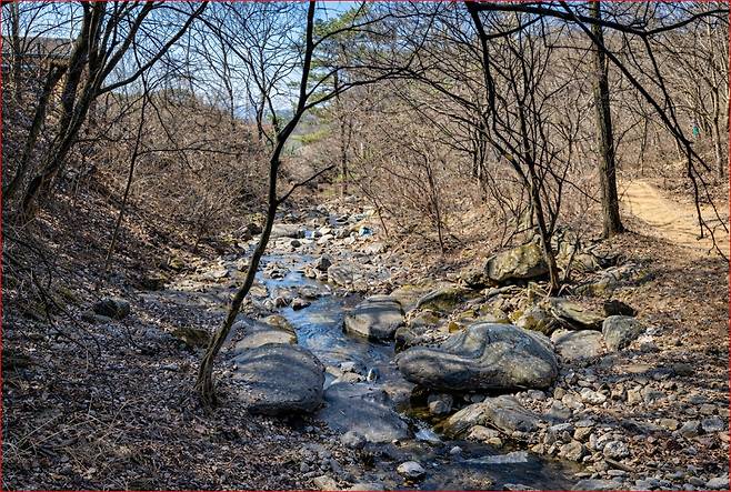 구룡길의 가장 큰 매력은 시작부터 끝까지 계곡을 따라 걷는다는 점입니다. 길을 걷는 내내 들리는 물소리는 도시의 소음을 잊게 만들어주며, 자연스럽게 호흡을 느리게 만들어 줍니다. 특히 기암괴석 사이를 흐르는 계곡물은 햇살을 받아 반짝이며, 걷는 동안 시선을 계속 머물게 합니다. 그래서 이 길은 단순한 트레킹이 아니라 ‘자연을 듣고 보는 경험’이라고 할 수 있습니다. 무엇보다도 대부분의 구간이 완만한 흙길로 이어져 있어 부담이 적습니다.