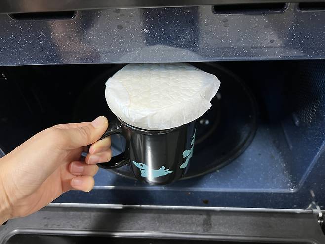 따뜻한 물이 아니라 찬물일 경우는 전자레인지 돌리는 시간을 더 늘려야 해요