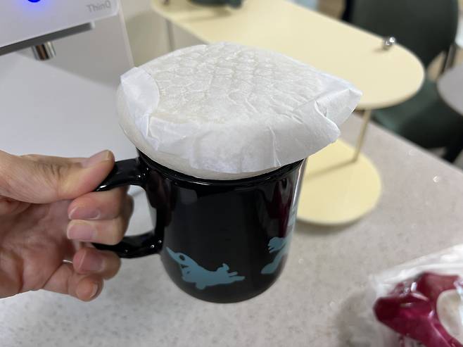 따뜻한 물을 넣은 머그컵 위에 호빵을 뒤집어서 올려놔 주세요