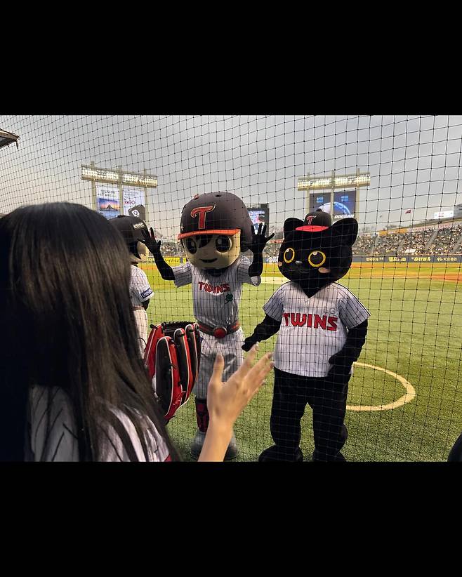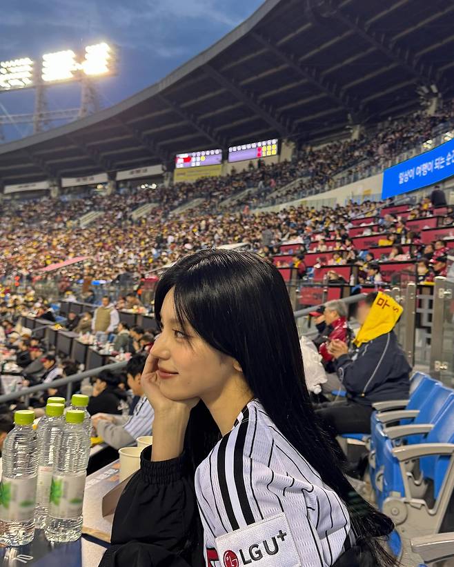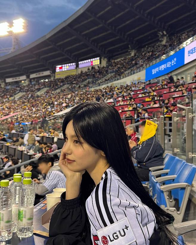 야구장을 찾은 그녀는 스트라이프 LG 트윈스 유니폼을 입고 등장했는데, 그저 유니폼일 뿐인데도 유난히 스타일리시하게 느껴졌던 건 그녀 특유의 쿨한 무드 덕분이었죠.