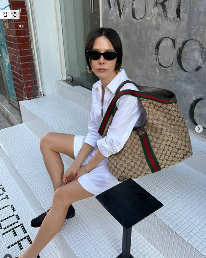 화이트 셔츠를 툭 얹어 주어 시크한듯