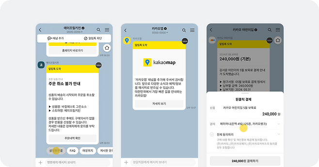 (B) 주문, 결제, 배송 등의 정보성 메시지를 전달한다.