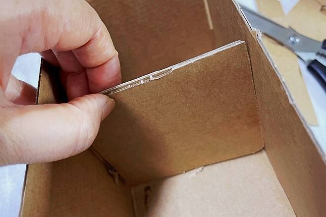 잘라낸 손잡이 부분을 커피캐리어 가운데 끼워 넣어 고정해 줍니다. 이렇게 해주면 칸막이가 생기는데요.