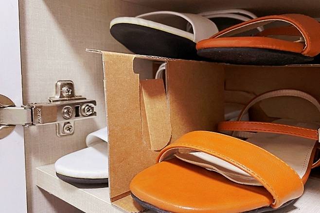 신발장 공간이 협소하면 신발끼리 겹치면서 지저분해 보이죠. 또한 신발에 오염이 생기기도 쉽고요. 물론 요즘 신발 정리대가 많이 있지만 굳이 살 필요 없이 커피캐리어 활용하셔도 좋은데요
