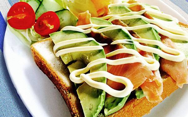 건강식으로 많은 사람들에게 인기 있는 연어와 아보카도의 조합.