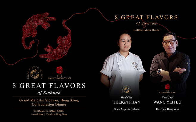 오는 3월 23일과 24일, 양일간 진행되는 ‘8 Great Flavors of Sichuan’ 디너에서는 더 그레이트 홍연의 왕업륙 셰프와 그랜드 마제스틱 시추안의 테인 판(Theign Phan) 셰프 가 협업해 정통 사천 요리와 광동 요리를 현대적으로 재해석한 8코스 디너를 선보일 예정이다.