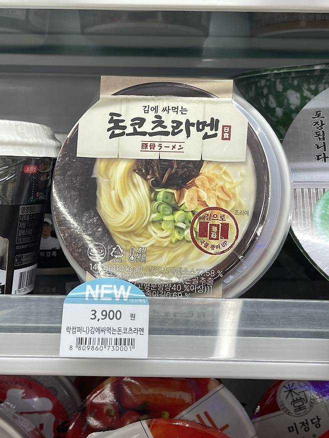 김에 싸먹는 돈코츠라멘은 진한 돈코츠 국물 라멘을 김과 함께 즐기는 색다른 콘셉트 제품이에요.