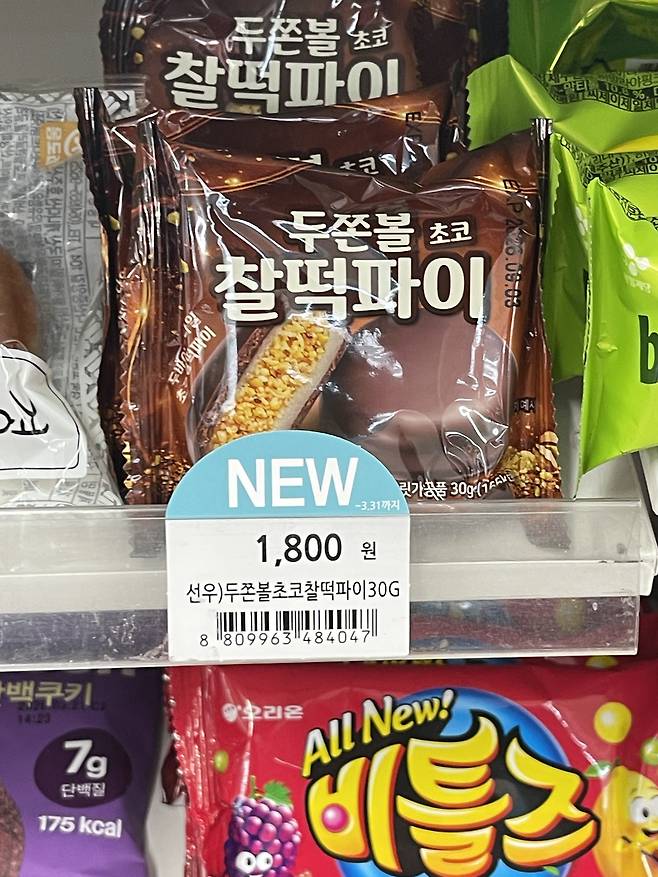 GS25 두쫀볼 초코 찰떡파이는 쫀득한 찰떡 속에 초코 크림이 가득한 디저트예요.