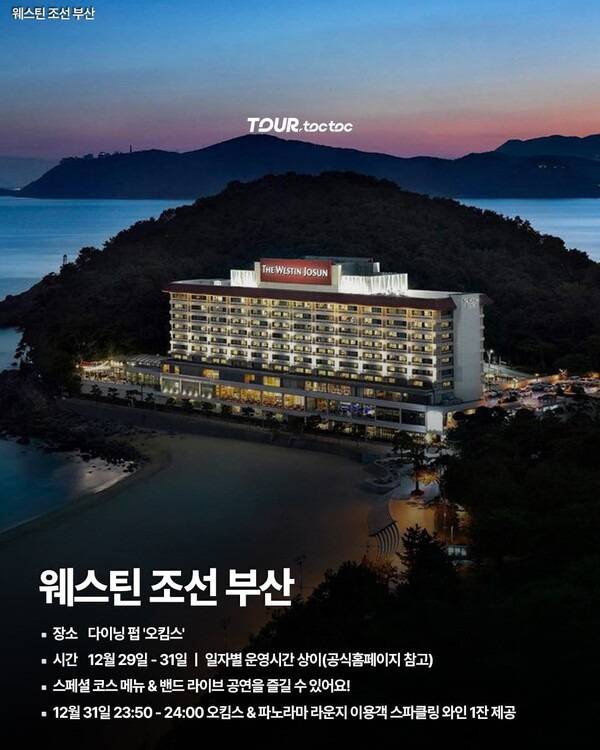 자정이 되면 오킴스와 파노라마 라운지 이용객에게는 스파클링 와인 한 잔이 제공되며, 로맨틱한 분위기 속 연말을 보낼 수 있습니다.