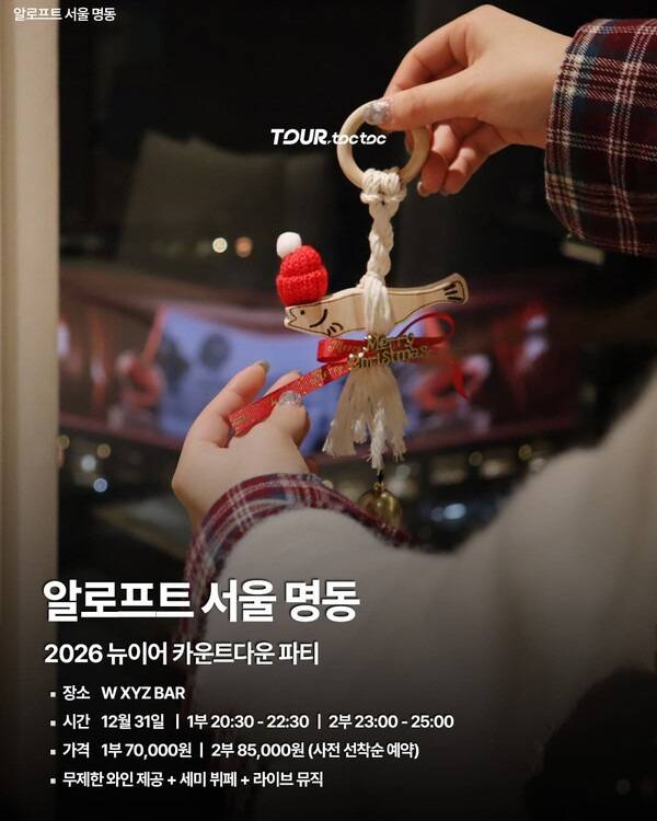 도심 한복판에서 펼쳐지는 소규모 연말 파티로, 호텔 내 바 공간에서 무제한 와인과 세미 뷔페, 라이브 공연을 함께 즐길 수 있습니다.
