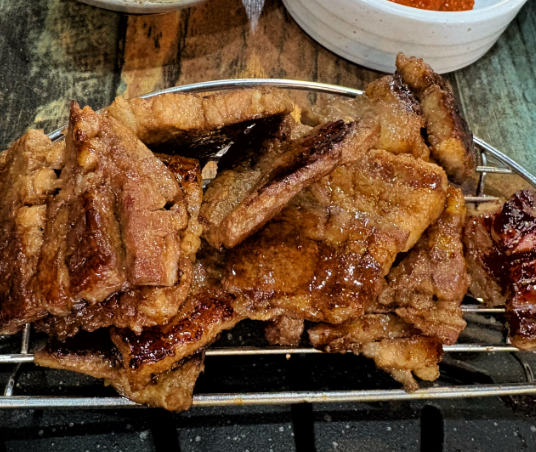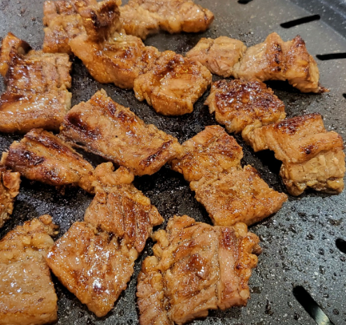 이곳은 일반 불판 대신 두꺼운 무쇠 철판을 사용해요. 숯불에 직접 굽기 때문에 고기의 풍미가 더욱 살아있고, 노릇노릇하게 익는 고기의 비주얼은 침샘을 자극해요.
