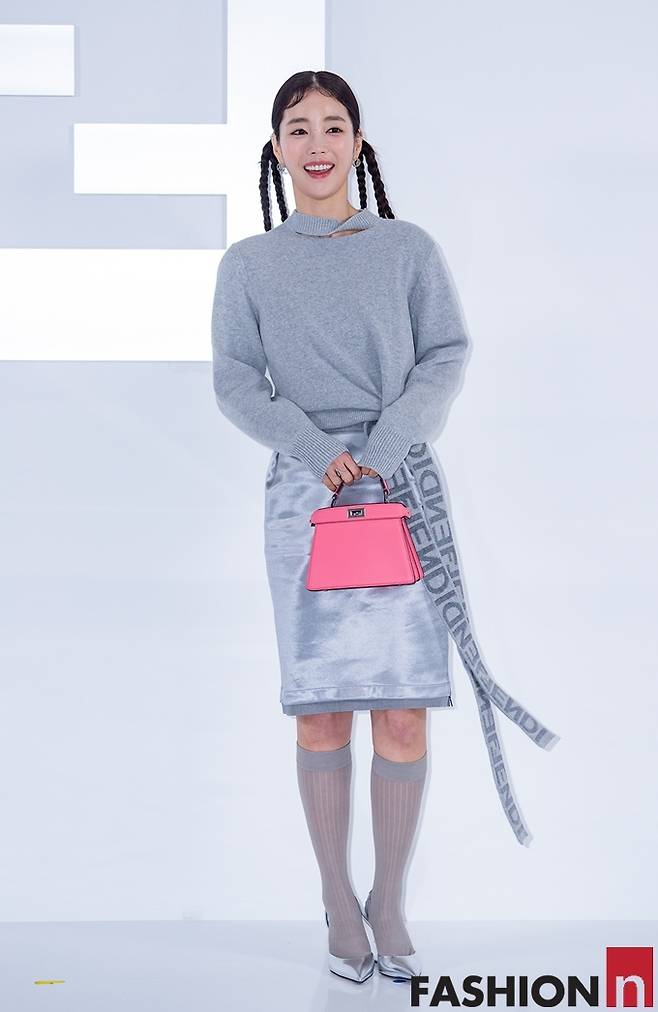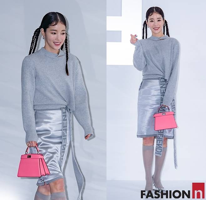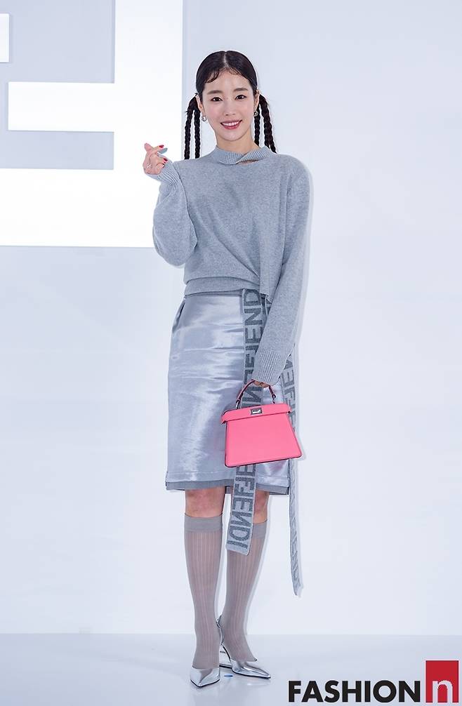 또 여기에 삭스와 슈즈까지 올 그레이 톤의 톤온톤룩에 핑크 핸드백으로 깜찍한 포인트를 주었다.