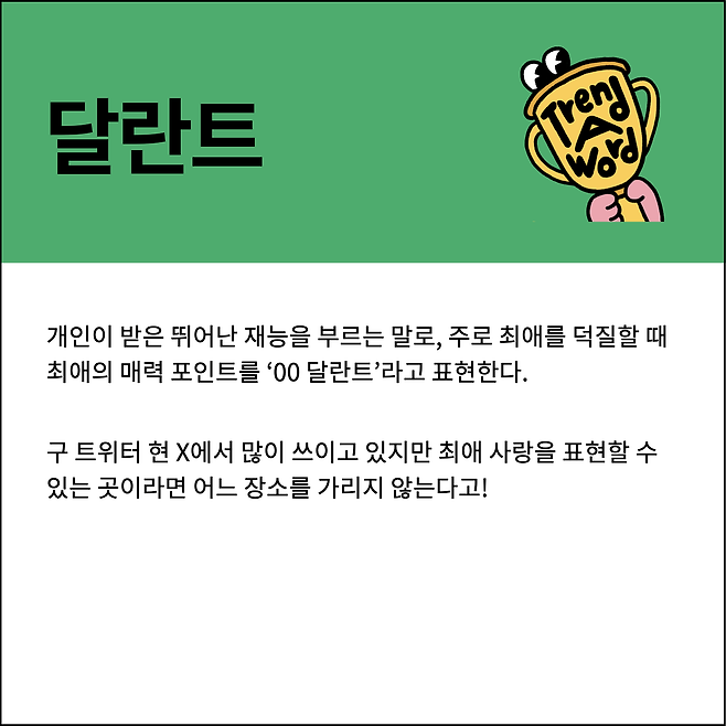 이제는 가벼운 주접에는 ‘달란트’ 단어만 가져가 쓰는 게 요즘 추세라고!