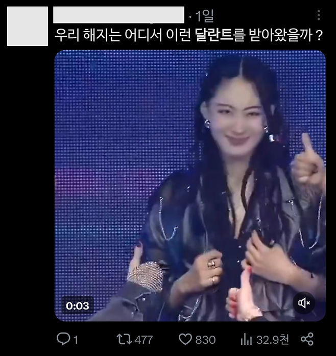 최애의 넘치는 끼와 재능을 ‘달란트 미쳤다’로 압축해서 표현하고 있다.