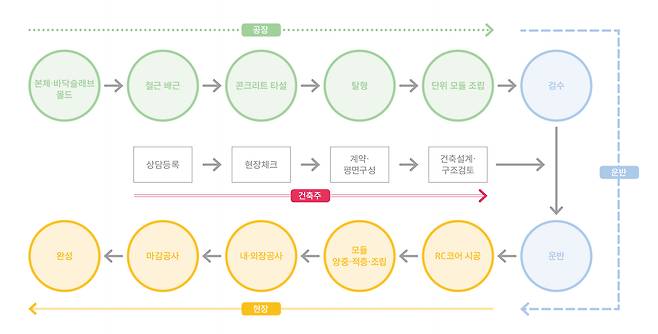 기존 철근콘크리트 건축은 철근을 배근하고 거푸집을 조립하고, 레미콘을 타설하고, 양생해 거푸집을 철거해 수개월에 걸쳐 구조체를 만든다. 또한 이 과정에서 먼지나 소음, 민원 등 부차적인 외부 영향도 무시하기 어렵다.
