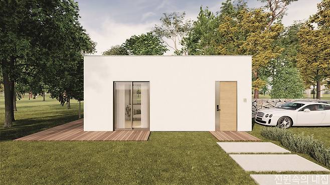 기본에 충실한 7평형 평지붕 주택. 작아 보여도 있을 것은 다 갖춰 잠시 머물며 주말의 여유를 보내기에는 더없이 부족함이 없다. 옵션으로 다락과 박공지붕 적용도 가능하다.