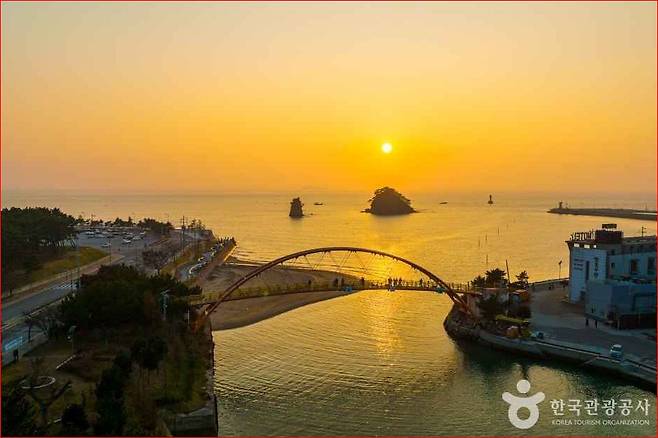 할미·할아비 바위: 해변 앞에 나란히 선 두 바위 사이로 떨어지는 일몰은 서해안 3대 낙조 중 하나로 꼽힙니다.