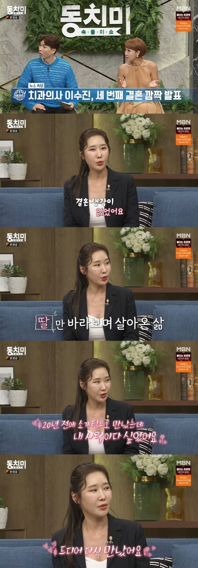 7월 30일 방송된 MBN ‘속풀이쇼 동치미’에서는 치과의사 이수진이 세 번째 결혼에 대해 말했다.