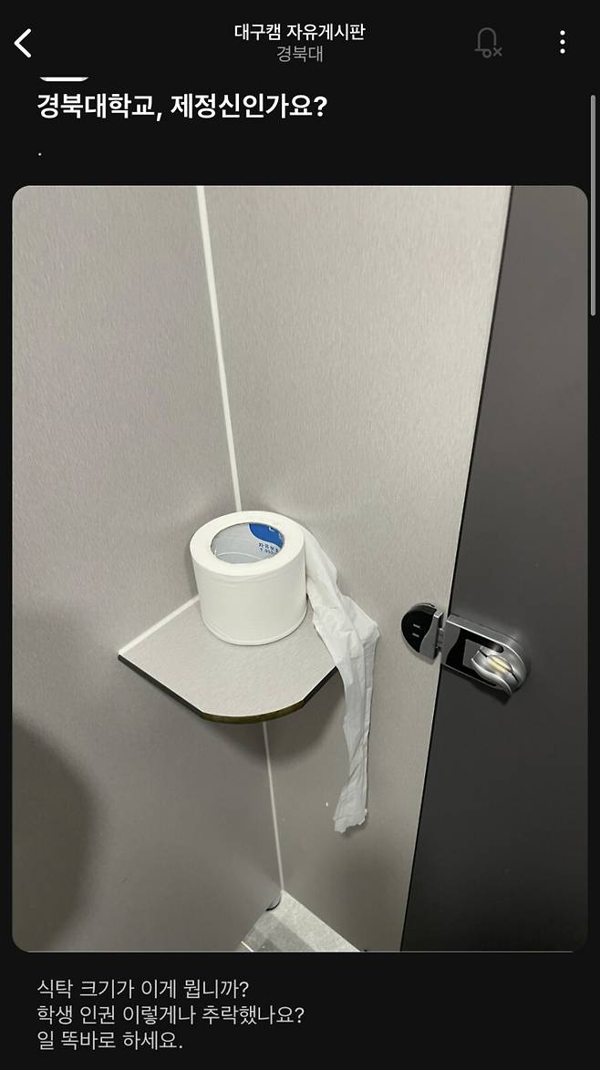 밥 먹는 식탁 크기가 작아서 민원 들어온 경북대학교