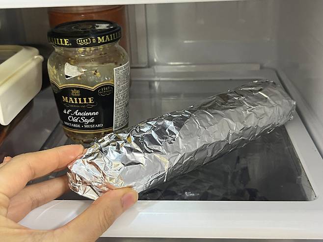 냉장고에 넣어 보관할 때도 호일의 장점이 있는데요. 호일의 금속성 재질이 냉기를 직접 차단해 냉장고의 찬 바람이 밥에 닿지 않습니다. 덕분에 밥이 딱딱해지지 않고 온도 변화에도 상대적으로 안정적입니다.