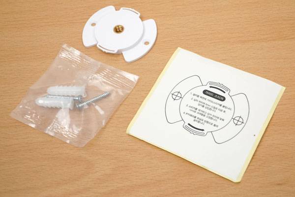 ipTIME C300의 전용 크래들은 크기가 작아지고 설치 방향을 따로 구분할 필요가 없어 벽이나 천장에 손쉽게 고정할 수 있다. 함께 제공되는 2개의 칼블럭(앙카)와 고정 나사를 사용하며, 정확한 위치에 고정을 뚫을 수 있도록 가이드 스티커도 포함된다. 또한 C300 크래들은 중간에 1/4인치 나사 홈이 추가되어 미니 삼각대를 비롯해 다양한 1/4인치 나사 설치 방식도 활용 가능하다.