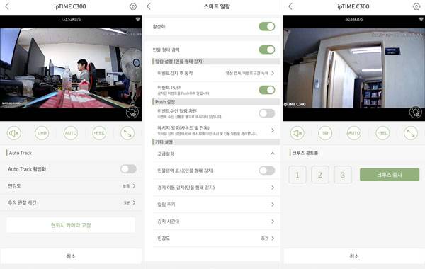 ipTIME 공유기가 다양한 설정 항목을 제공하는 것처럼 ipCAM도 단순한 카메라 연결 뿐만 아니라 C300 제어에 필요한 모든 기능을 빠짐없이 갖추고 있어 별도의 리모트 컨트롤러가 없더라도 사용자 환경에 최적화된 IP 카메라 설정을 할 수 있다.