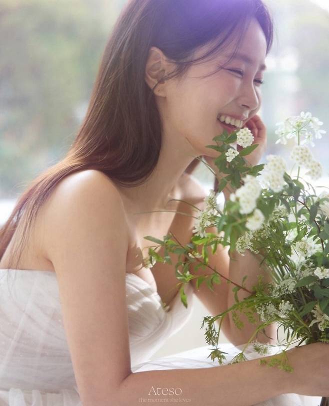 마지막 컷은 꾸미지 않아도 빛나는 두 사람의 케미를 담은 컷이었어요! 순백의 튤 드레스와 회색 수트를 입고 햇살 가득한 창가 앞에서 자연스러운 미소를 짓는 모습이… 화보가 아니라 영화의 한 장면 같았어요! 역시 꾸안꾸가 진리인가… (˘◡˘)