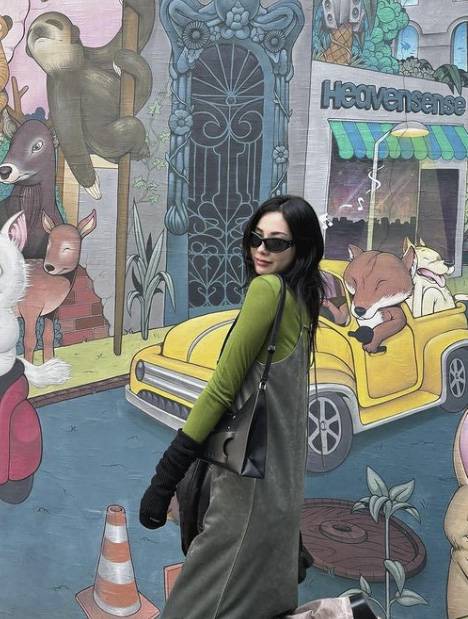 나나는 지난 16일 자신의 인스타그램에 "봄이여오라"라는 멘트와 함께 봄에 어울리는 룩을 입은 여러 장의 사진을 게재했다. 사진 속 나나는 그린 계열의 티셔츠에 바지를 입고 그 위에 뷔에스티에 원피스를 레이어드했다.