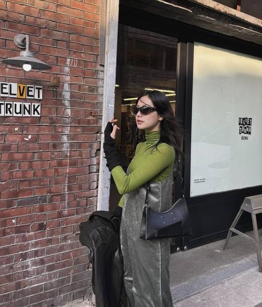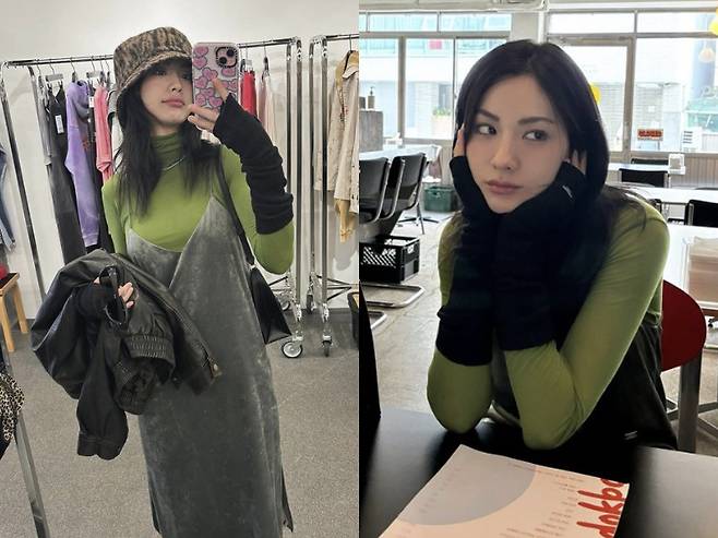 특히 여기에 팔토시를 착용해 레이어드 패션을 완성했다. 겹겹이 겹쳐 입은 패션으로 스타일리시한 레이어드룩을 선보이고 있다.