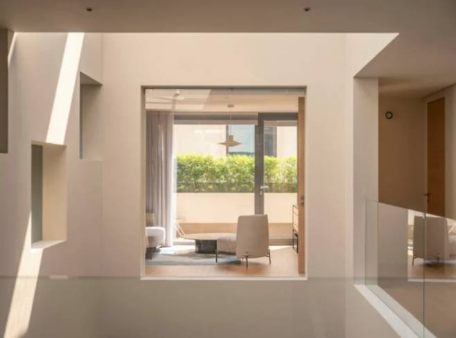 건축 형태 측면에서 보면, 주택 하층의 공용 공간은 중앙 집중식 기단 역할을 하며, 상층의 침실들은 형태적으로 독립적이어서 하늘 테라스와 같은 느낌을 줍니다. 동시에 침실들은 XY 평면상에서 도로 모퉁이를 따라 회전하는 구조를 채택하여 흥미로운 건축적 파사드를 만들어내고, 건물이 주변 주거 블록의 환경과 조화롭게 어우러지도록 했습니다.