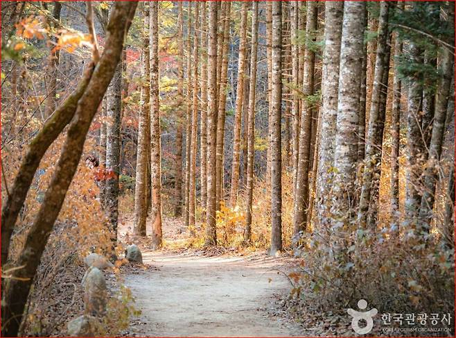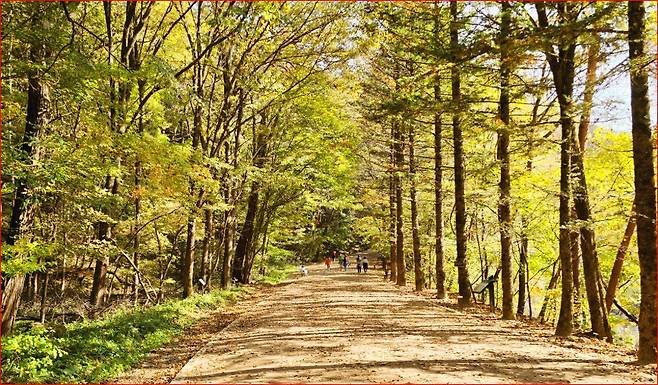 울창한 전나무숲은 그 자체로 힐링 공간입니다. 빛이 스며드는 이 숲길을 걸으면 마치 속세의 번잡함을 벗어나 고요한 명상 공간에 들어선 듯한 느낌을 줍니다. 그래서인지 이 길은 ‘한국의 아름다운 길’ 로 늘 손꼽히며, 가을이면 발 디딜 틈이 없을 만큼 사람들이 몰려듭니다.