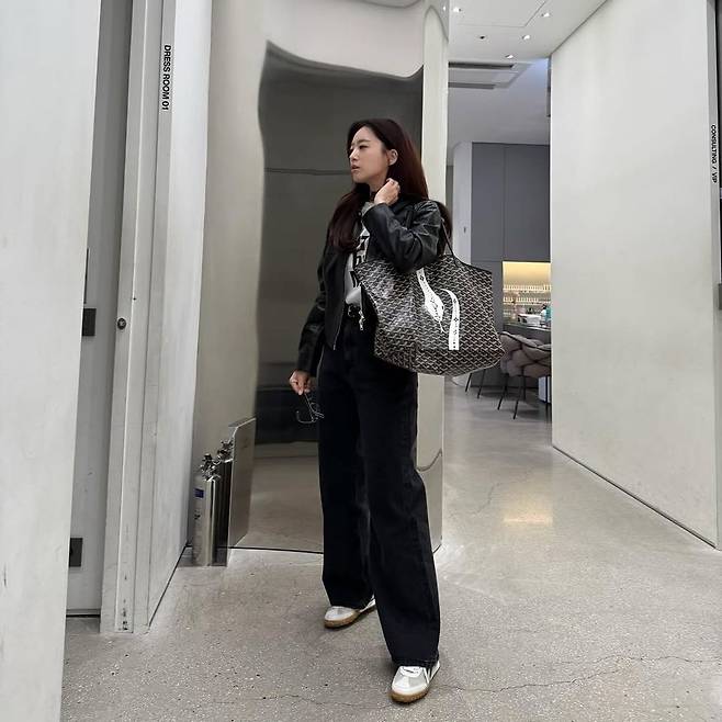 특히 주목할 점은 색상 매치다. 상하의를 블랙으로 통일하되, 화이트 포인트(이너와 슈즈)로 답답함을 해소하는 전략이 인상적이다. 데일리 코디에 변화를 주고 싶다면, 함은정처럼 모노톤을 기본으로 소품에 변화를 주는 방법도 추천할 만하다. 크기가 큰 가방이나 유니크한 패턴이 들어간 액세서리를 더하면 밋밋하지 않은 스타일링이 가능하다.