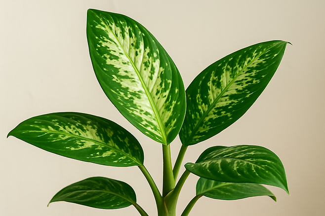 디펜바키아는 넓고 푸른 잎이 매력적이지만, 옥살산 칼슘이라는 독성 물질이 함유되어 있습니다.